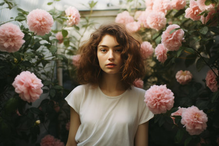 Proud Woman Embracing Natures Beauty: A Captivating Snapshot of Pink Floral Wonderland - AR 3:2