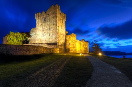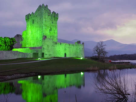 Ross Castle in Killarney National Park, Ireland. Evening view during Patrick day.