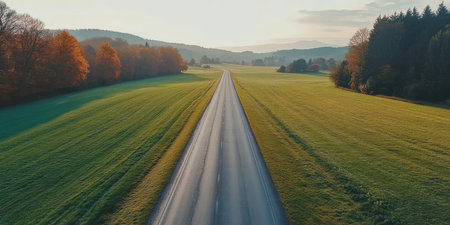 Rural road through the countryside at sunset. Soft focus, shallow DOF.