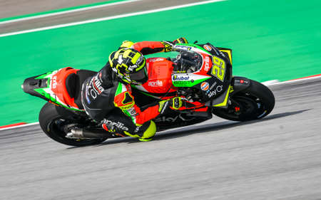 SEPANG, MALAYSIA - NOVEMBER 03, 2019 : Aprilia Racing Team Gresini rider Andrea Iannone (29) during the Malaysia Motorcycle Grand Prix (MotoGP) at Sepang International Circuit (SIC).