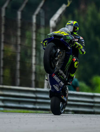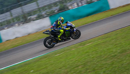 SEPANG, MALAYSIA - NOVEMBER 03, 2019 : Valentino Rossi (46) of Italy and Yamaha Factory Racing during the Malaysia Motorcycle Grand Prix (MotoGP) at Sepang International Circuit (SIC).