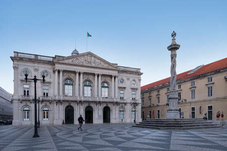 Lisbon, Portugal - June 01 2018: Municipal square with the City Hall and the Pillory of Lisbon (Portuguese: Pelourinho de Lisboa).