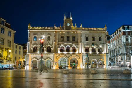 Lisbon, Portugal - May 8, 2017: Rossio station at night