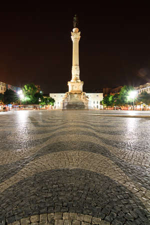 Night scene of the beautiful Dom Pedro IV square in Lisbon, Portugal