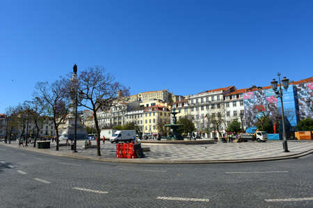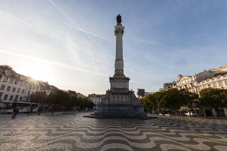 famous Rossio square at sunny day, Lisbon, Portugal with sunshine