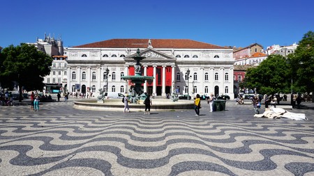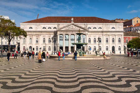Lisbon, Portugal - 8 March 2020: facade of the National Theatre Dona Maria II on Rossio square