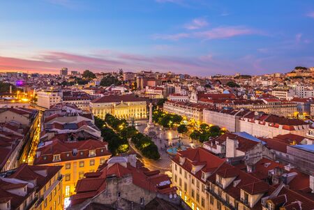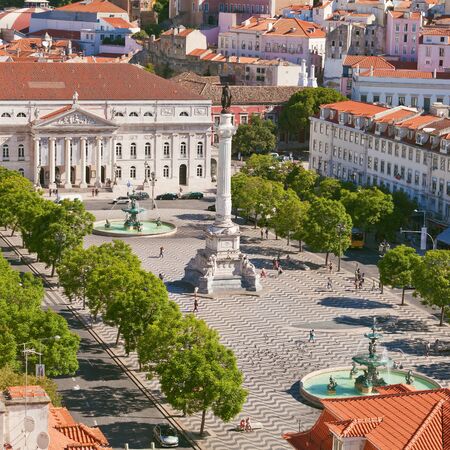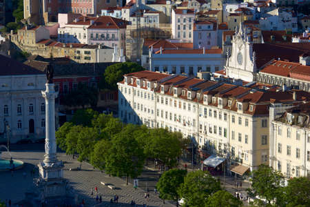 Lisbon, Portugal - 2 March 2020: Rooftop aerial view of Lisbon & Praca Dom Pedro IV