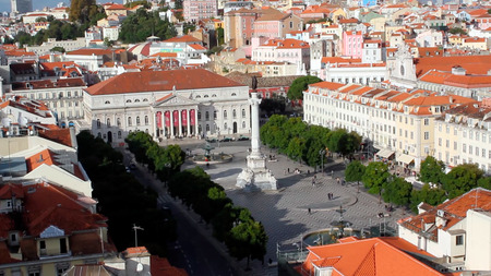 Aerial view Rossio square, Baixa, Lisbon, Portugal