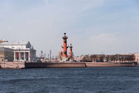 Rostral Columns at Spit of Vasilyevsky (Basil) island in Saint Petersburg. Russia