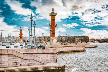 Petersburg. Rostral columns. Vasilievsky Island in St. Petersburg.