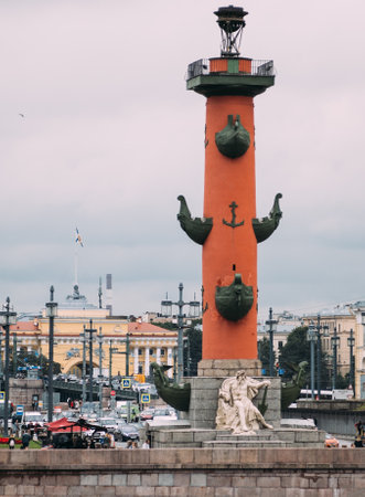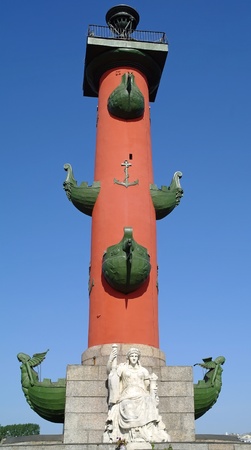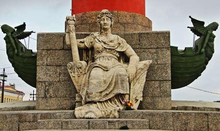 SAINT PETERSBURG, RUSSIA - MAY 26, 2015: Rostral Column figure of the Old Saint Petersburg Stock Exchange (also Bourse), are significant examples of Greek Revival architecture.