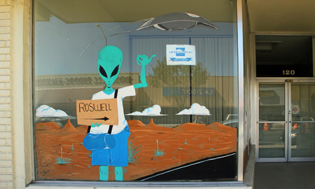ROSWELL, NEW MEXICO - OCTOBER 06: Main Street in Roswell with Alien Gift Shops 2013