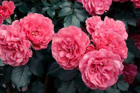 Beautiful pink roses in the garden. Vintage style. Selective focus.