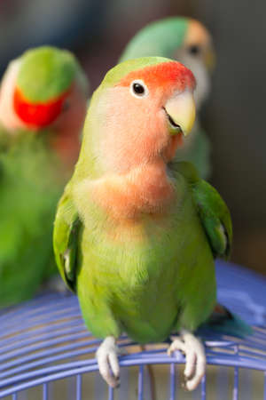 Green-red caged parrots. Agapornis roseicollis Viellot, Psittacidae