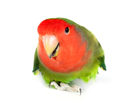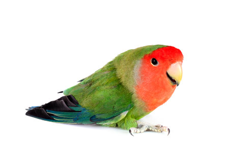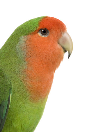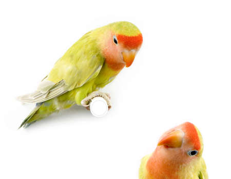 Peach-faced Lovebirdin - Agapornis roseicollis or Lilian's Lovebird - Agapornis lilianae front of a white background