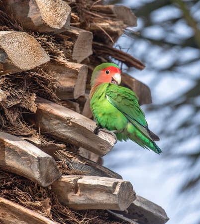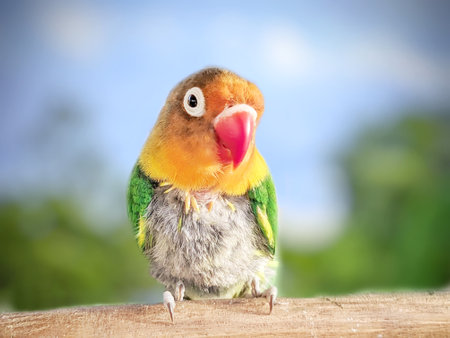 Beautiful bird, Lovebird, standing on the tree branch, side profile