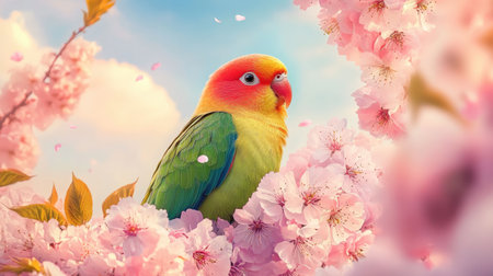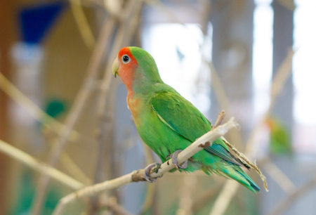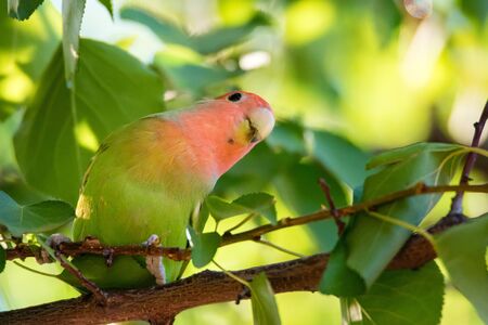 cute bird lovebirds or parrot are perched on a tree branch. This bird which is used as a symbol of true love has the scientific name Agapornis fischeri, bird background