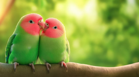 Lovebirds are sitting on a branch in the forest. Lovebird