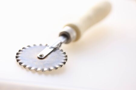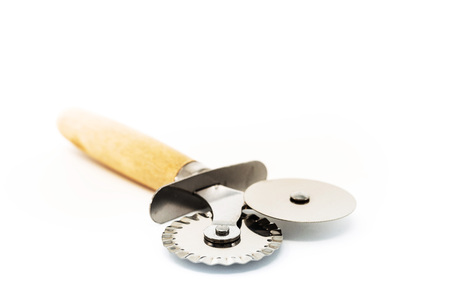 Rotary knife cutter on white .