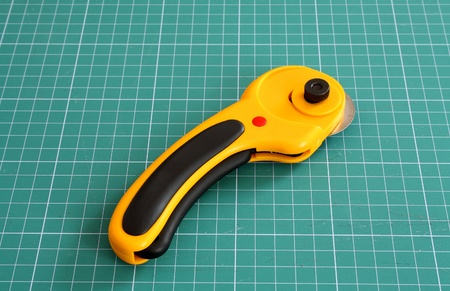 Rotary cutter on measure mat close up
