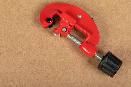 Cutting a copper pipe with a red pipe cutter