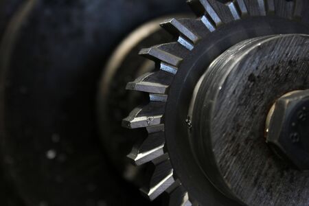 steel cutter close up aerial view on black background