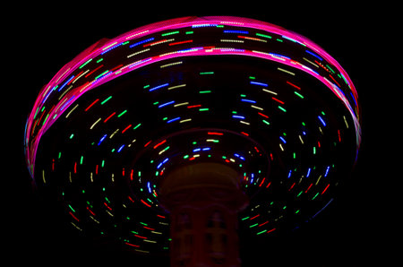 Colorful Light Trail From A Fast Carrousel At A Fun Park In The NIght