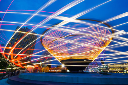 Fairy wheel in an amusement park during night time, taken at slow shutter.