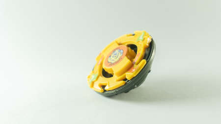 Yellow color plastic toy that rotates rapidly in its own position isolated on white background