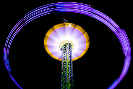 attractions in a night entertainment park, long exposure