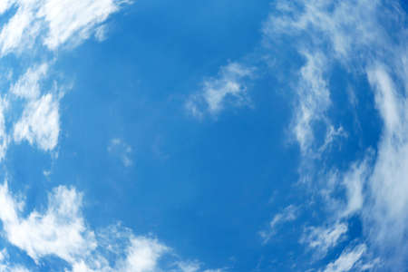 Natural sky composition. Sunny vast blue sky abstract background. Beautiful cloudscape, view over white fluffy clouds. Freedom concept, on the heaven. Element of design.