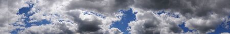 Panorama of the white fluffy clouds in the fantastic blue sky.