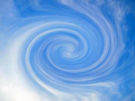 Hurricane shaped vortex in couldy sky sucking all into it.