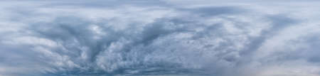 Sky 360 panorama - Bright blue sky filled with fluffy white Cirrus clouds. Seamless hdr spherical 360 panorama. Sky dome, sky replacement for aerial drone 360 panoramas. Weather and climate change