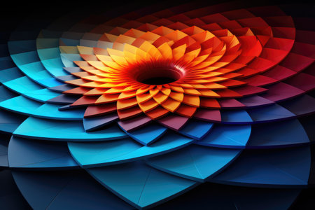 A colorful abstract image of a spiral with orange and blue colors, AI