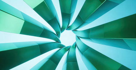 Explore this captivating abstract design featuring dynamic spiraling shapes in vivid green and blue hues, creating a sense of modernity and depth against a dark backdrop.