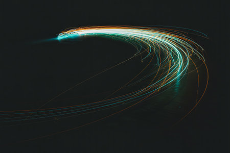 Dynamic light trails with blurred motion create a mesmerizing effect on a dark backdrop