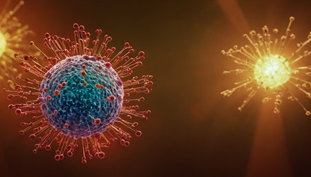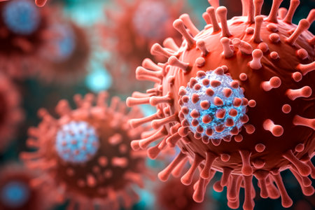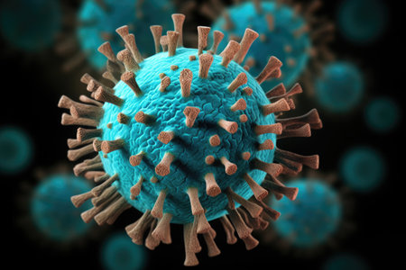 Detailed representation of a virus with spikes visible in a microscopic view highlighting its structure and potential effects