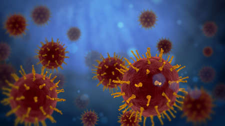 3D illustration. Coronavirus outbreak infecting respiratory system. Influenza type Covid 19 virus background as dangerous flu. Pandemic medical health risk concept with disease cells.