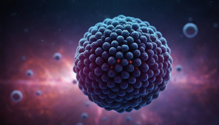 Intricate Visual Representation of a Virus With Colorful Surface Features Against a Gradient Background