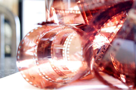 Filmstrip wedding ceremony silhouette viewed against soft natural daylight illustrating the concept of looking back at a romantic betrothal celebration.