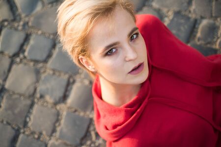 Freedom feeling. Relaxed attractive girl outdoors. Youth fashion. Feeling free and stylish. Girl wear modern clothes for youth generation. Enjoying walk. Forever young. Youth just want to have fun