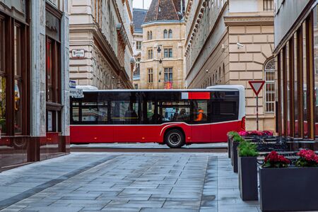 Budapest Hungary july 20, 2020 View of a Hungarian tourist bus driving through the streets and part of the public transport system of Budapest, the capital of Hungary