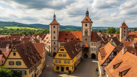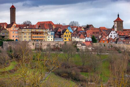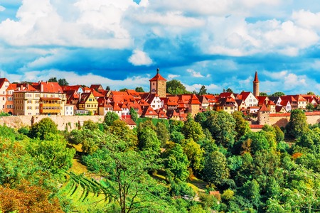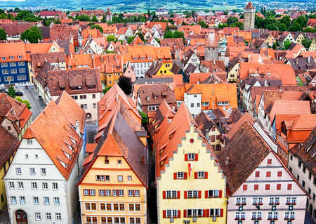 Scenic summer panorama of the Old Town architecture of Rothenburg ob der Tauber, Bavaria, Germany