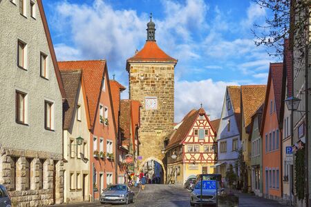 Old houses in Rothenburg ob der Tauber, picturesque medieval city in Germany, famous UNESCO world culture heritage site, popular travel destination