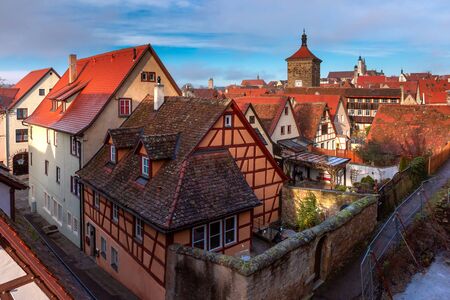 Rothenburg ob der Tauber, Germany. Old town at sunset.