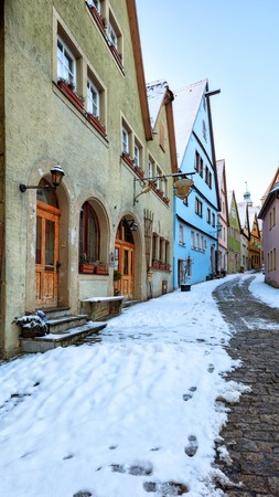 Amazing winter in old town of Rothenburg ob der Tauber, Middle Franconia, Bavaria, Germany