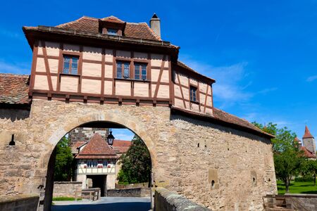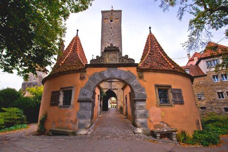 Rothenburg ob der Tauber. Western town gate Burgtor) of medieval German town of Rothenburg ob der Tauber. Bavaria region of Germany