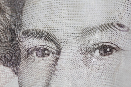 British Pound coins and US Dollar banknotes in a horizontal color macro picture
