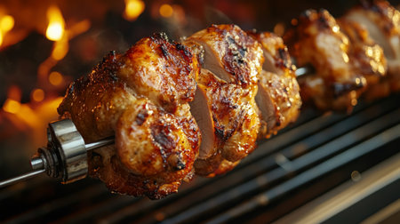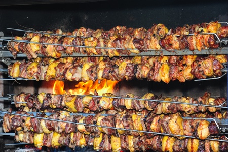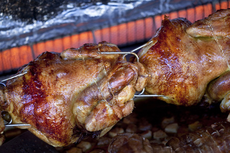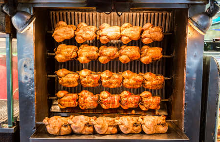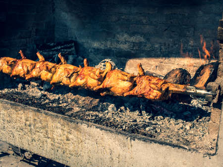 Grilled chicken on spit, outdoor Croatia